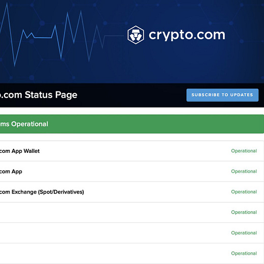 Also Crypto.com did not mark any of their services as less than fully operational on their status page.
