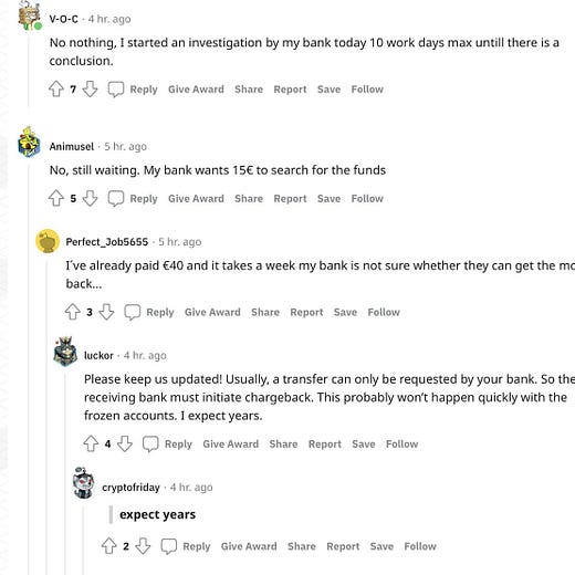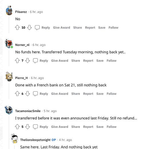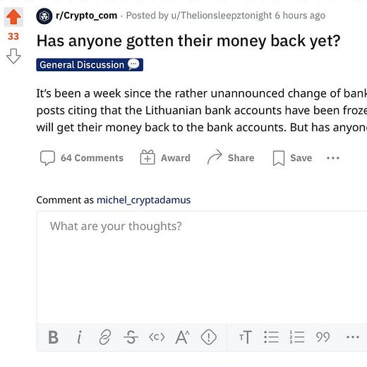 Which begs the question: what happened to all of Crypto.com’s Euro denominated money? Because it sure sounds like it was seized by the government of Lithuania and is no longer available to be withdrawn. And all those users who sent their Euros to Transactive Systems UAB account - what happened to their funds?